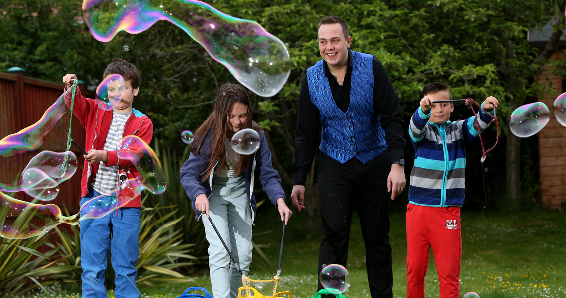 A Bubble Pop show is exciting and fun! Up to 1 hour of bubble entertainment. Bubble Pop offers indoor and outdoor parties and you can also combine the two if you wish. It's a show packed with participation and is ideal for children aged between 4 and 11 years.