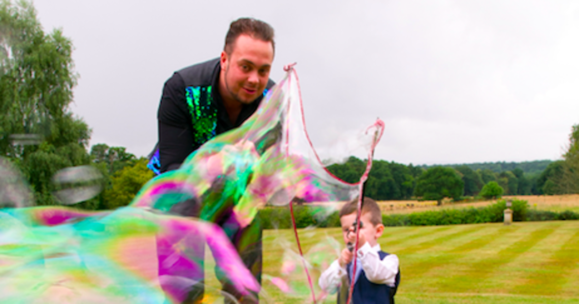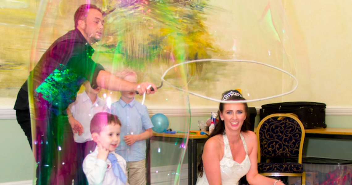 Just imagine walking out of the wedding ceremony and seeing a sky full of beautiful bubbles! Bubble Pop can also attend your reception, so that all your guests have a chance to go inside a bubble, or have a go at making giant bubbles in the venue's outside area! A children's show can also be added to entertain the little ones. It makes for a fantastic photo opportunity and will add a little extra magic to your wedding day. Bubble Pop are happy to attend for just one of the options, or you may add as many extra options as you wish to tailor make the perfect day.